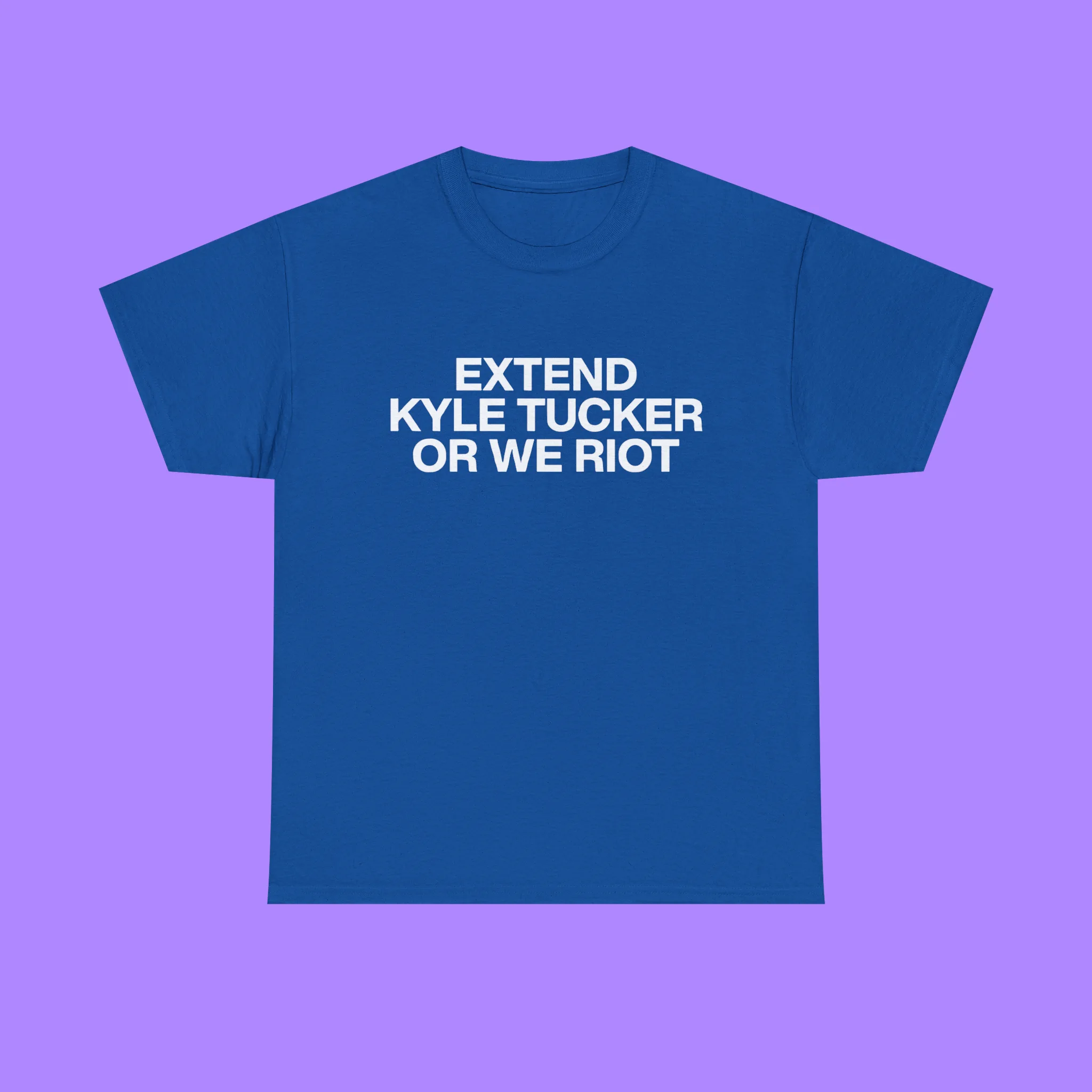 - Bold print: “EXTEND KYLE TUCKER OR WE RIOT” in clean, high-contrast lettering
