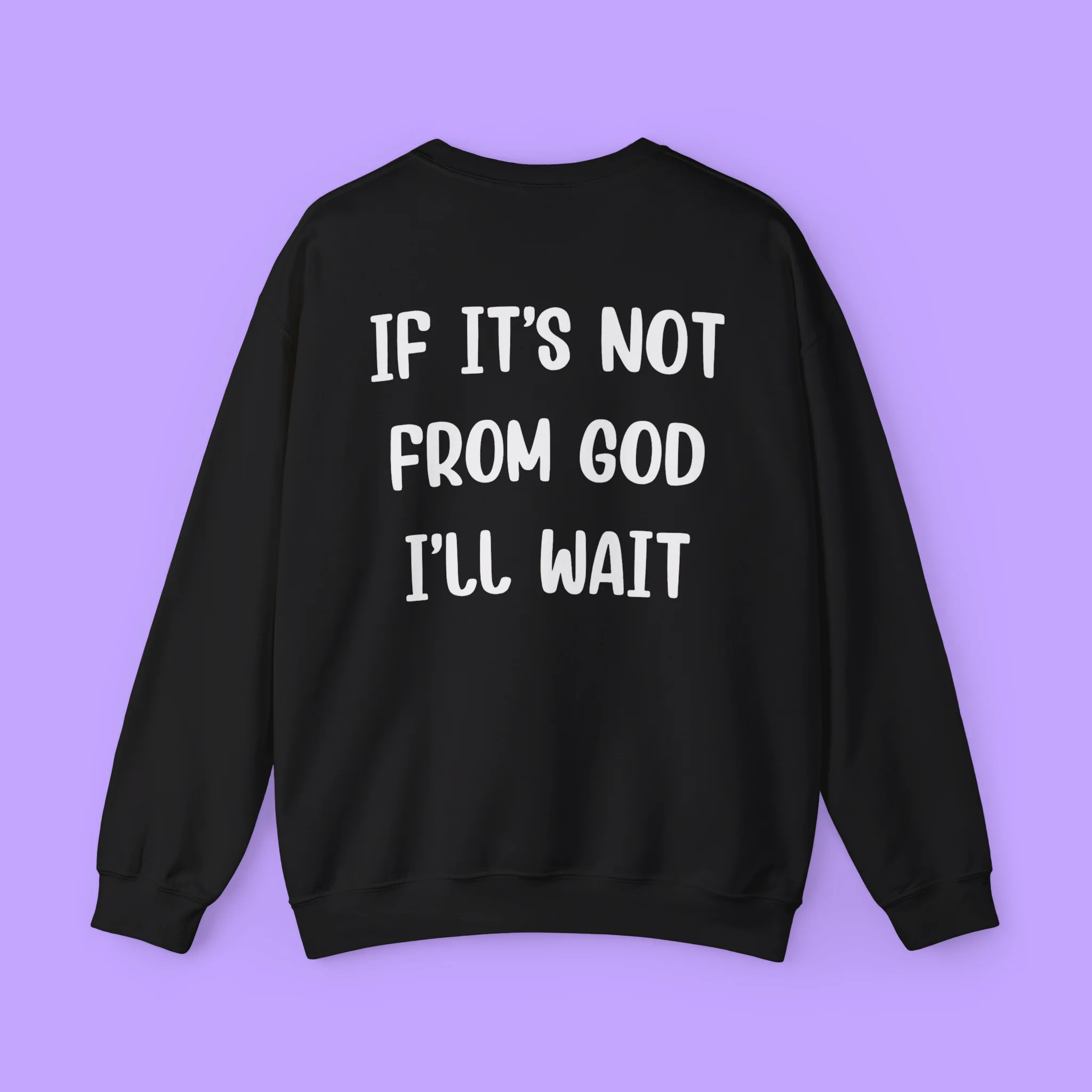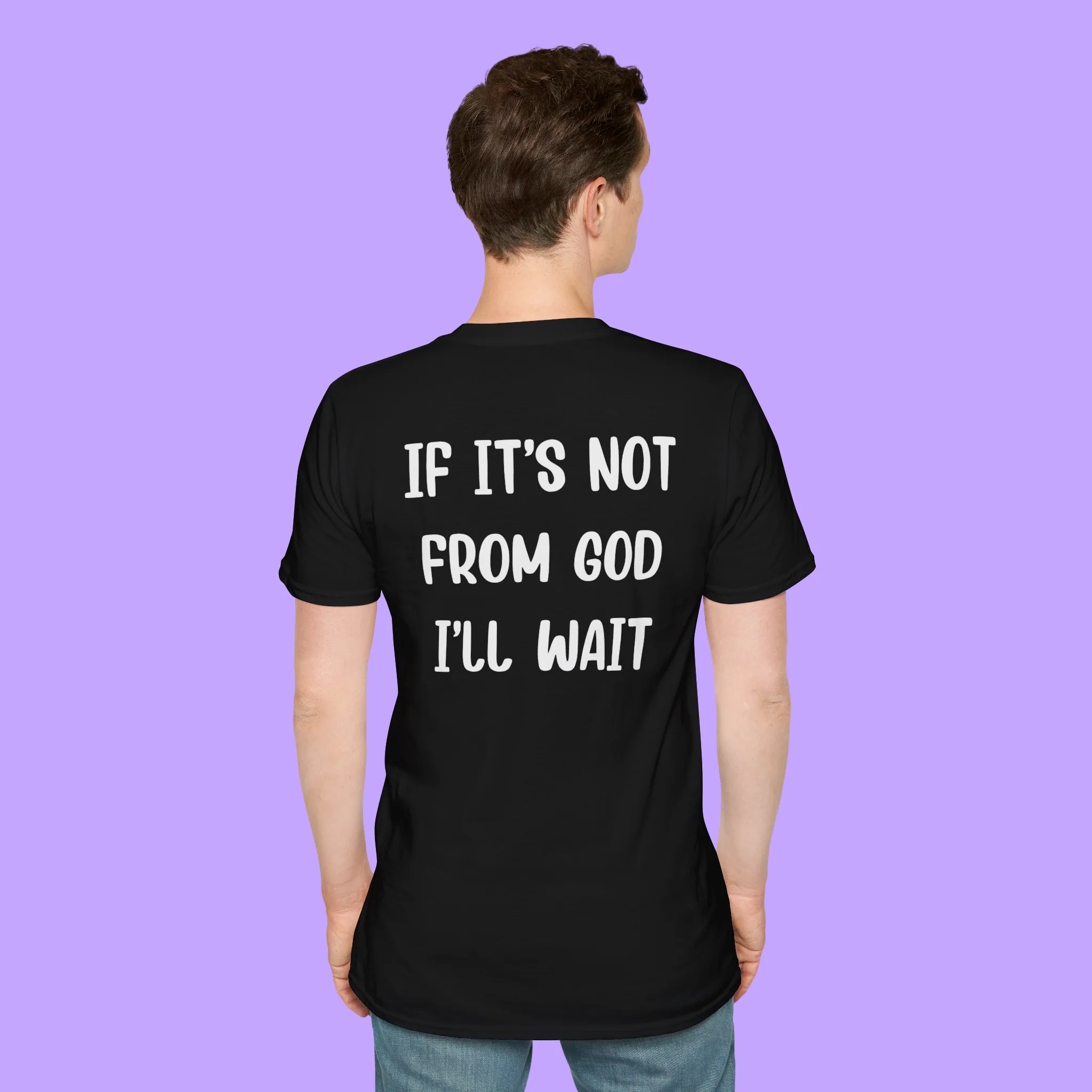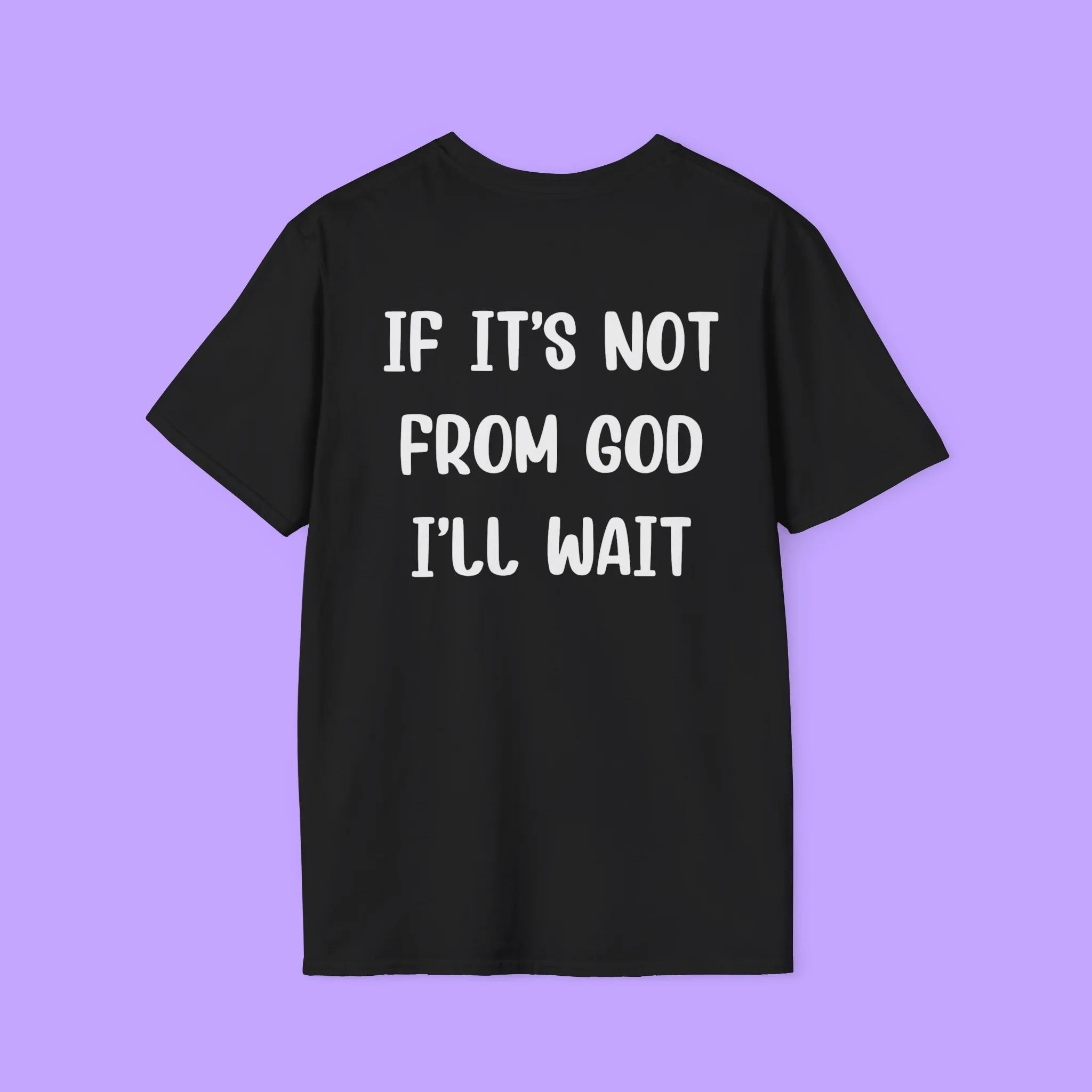 The phrase “If It’s Not From God, I’ll Wait” is boldly printed across the chest, making it clear that you live by faith, not by rush. Whether you wear it to church, youth group, Bible study, or just out with friends, this shirt speaks volumes without saying a word.