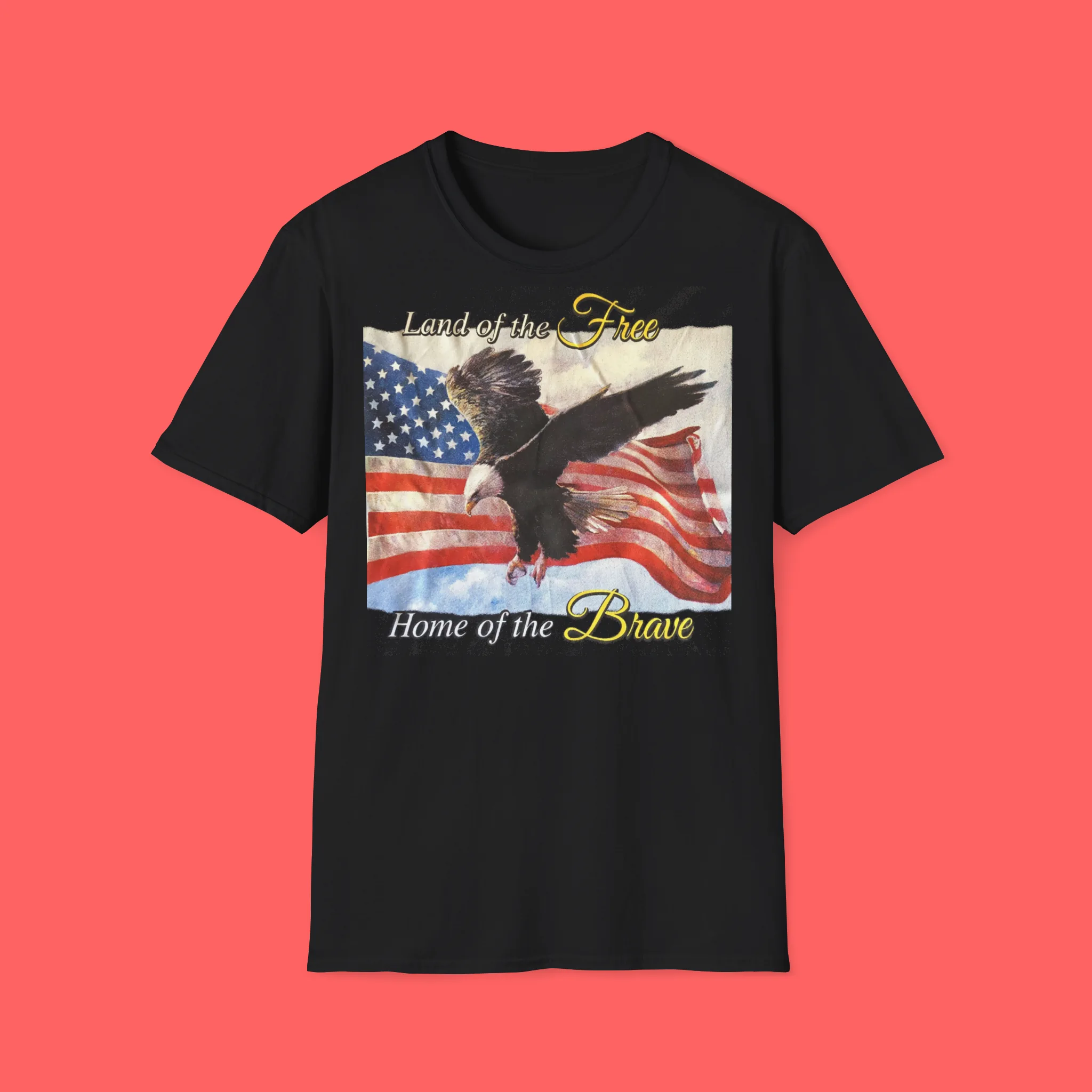 The phrase “Land of the Free, Home of the Brave” belongs to stadium chants, firework shows, and political rallies. On a shirt, though, it flips the script. The bold lettering screams sincerity while also inviting mockery. You get to choose whether you wear it straight or ironically—and that tension is what makes it unforgettable.