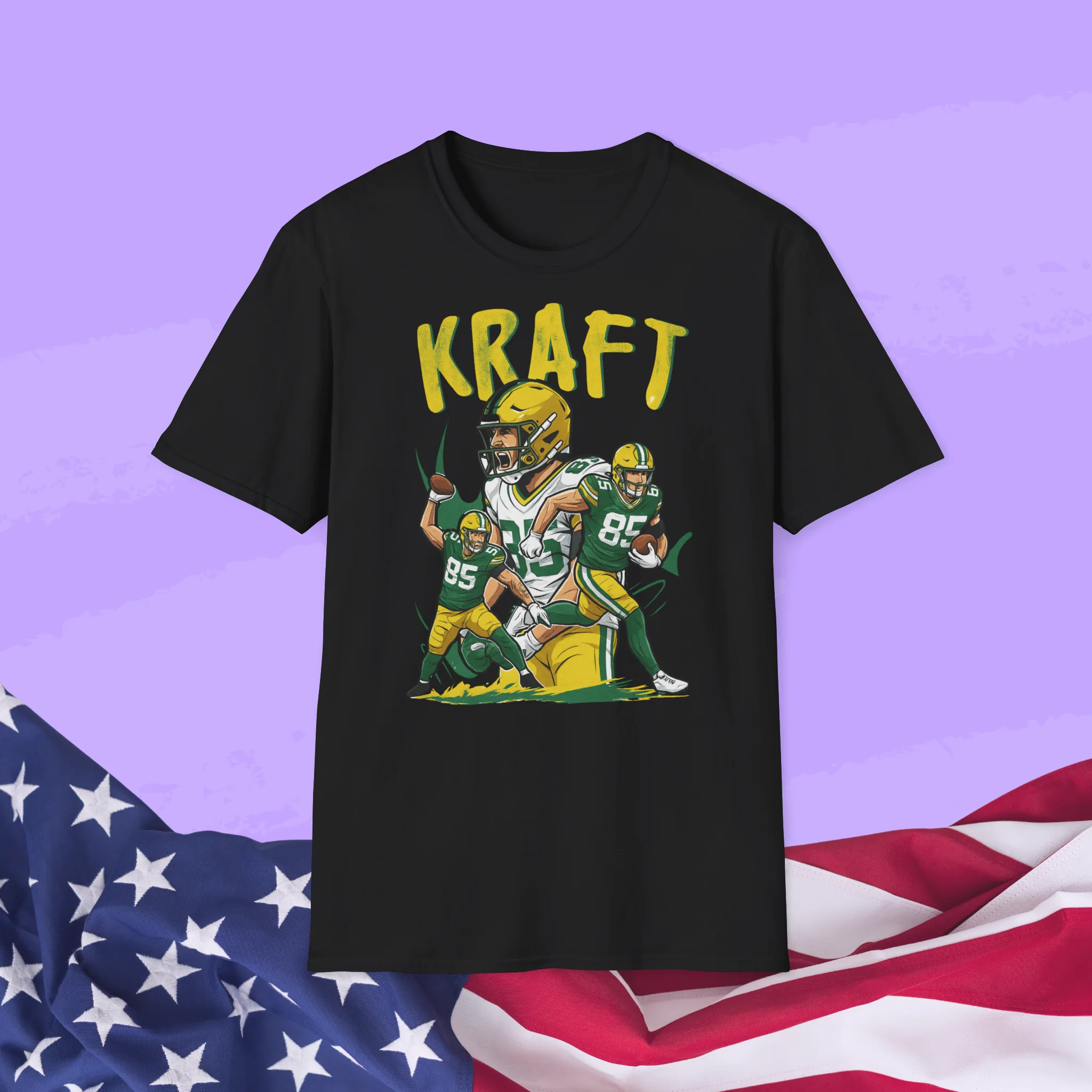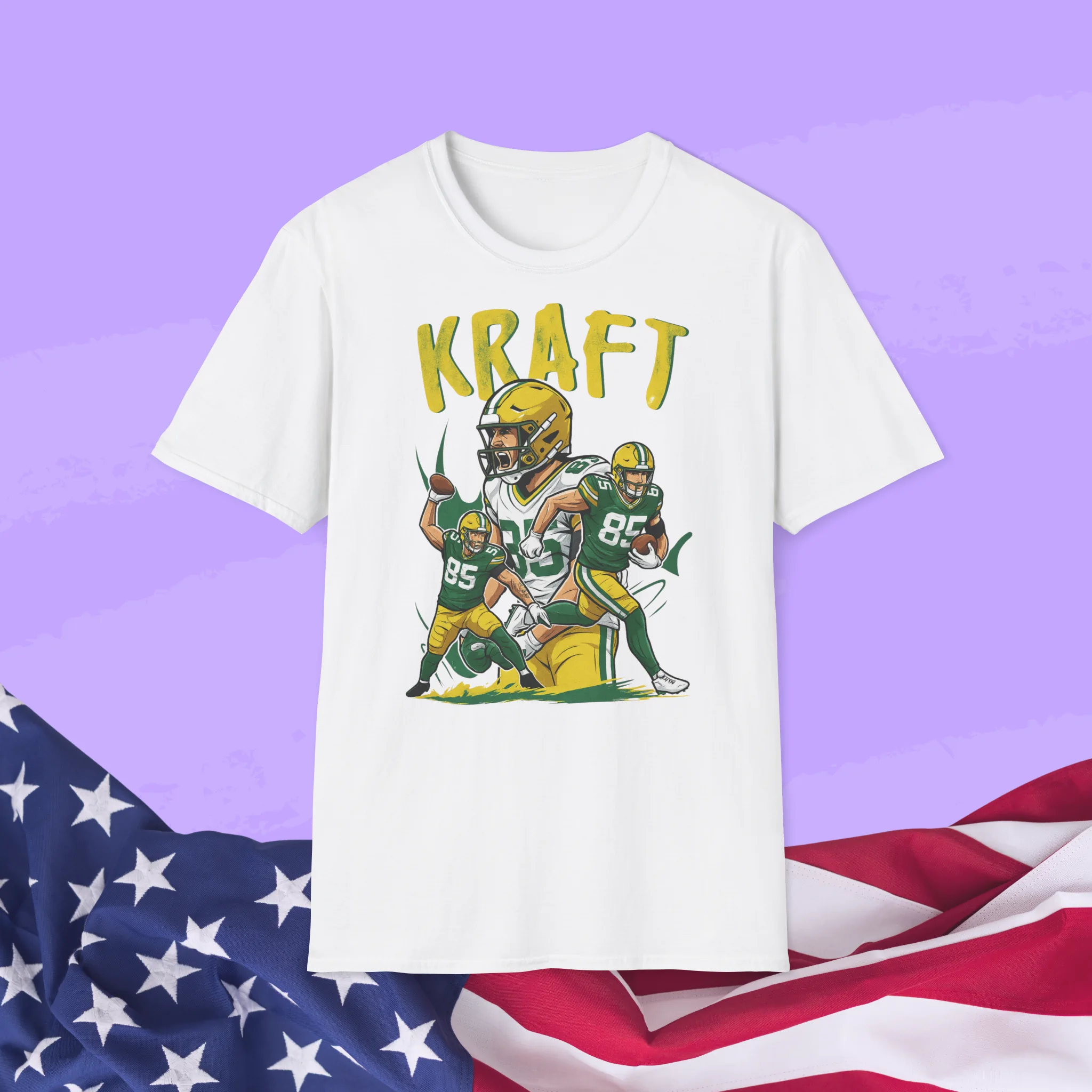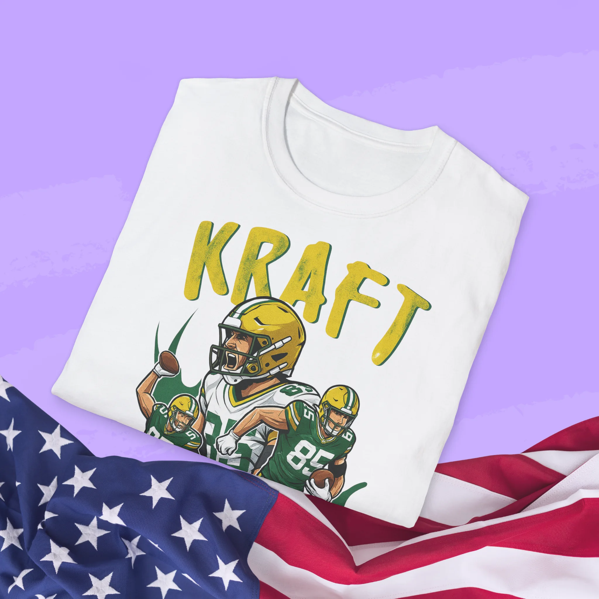 Inspired by the fearless tight end Tucker Kraft, this tee captures the heart of New York football—bold, relentless, and impossible to ignore. The design features a vintage-style football print with clean typography that gives a nod to classic athletic gear while keeping things fresh for today’s streetwear vibe. It’s sporty, stylish, and ready for anything—from kick-off to overtime.